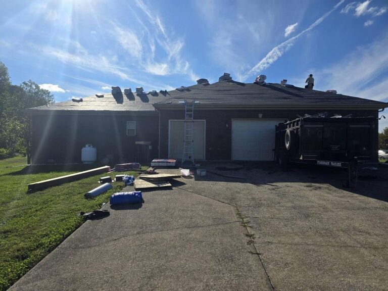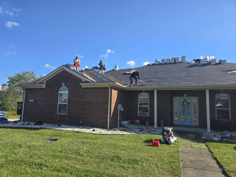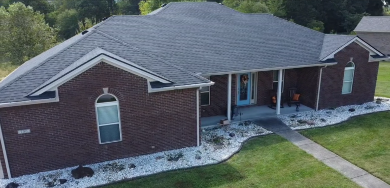 These happy homeowners in Berea, KY are excited about their brand-new roof from Grand Rising Exteriors! They opted for an upgraded Rdige-Vent system and closed off the less-efficient box vents previously installed. The transformation is tremendous!