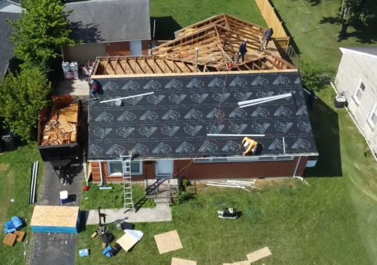 These happy homeowners in Lexington, KY is excited about their brand-new roof from Grand Rising Exteriors! Not only did we install a new roof, but this home and garage both needed complete re-decking! The transformation is incredible!